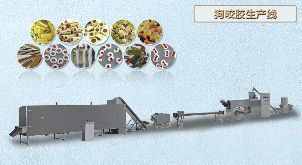 寵物咬膠生產(chǎn)線是專門用于生產(chǎn)狗咬膠系列產(chǎn)品,經(jīng)過單螺桿擠出機(jī)擠出,該生產(chǎn)線可生產(chǎn)條狀、棒狀、麻花狀、雙色及多色形狀各異的寵物咬膠。愛犬咀嚼過程中,適度對愛犬的牙齒進(jìn)行按摩,同時促進(jìn)愛犬分泌唾液,幫助提高其消化功能。天然食物制造,耐磨損,無毒無害。磨牙、補(bǔ)充營養(yǎng)。